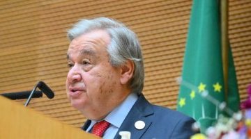 Au Sommet de l’Union africaine à Addis-Abeba, le Secrétaire général de l’ONU, António Guterres, ...