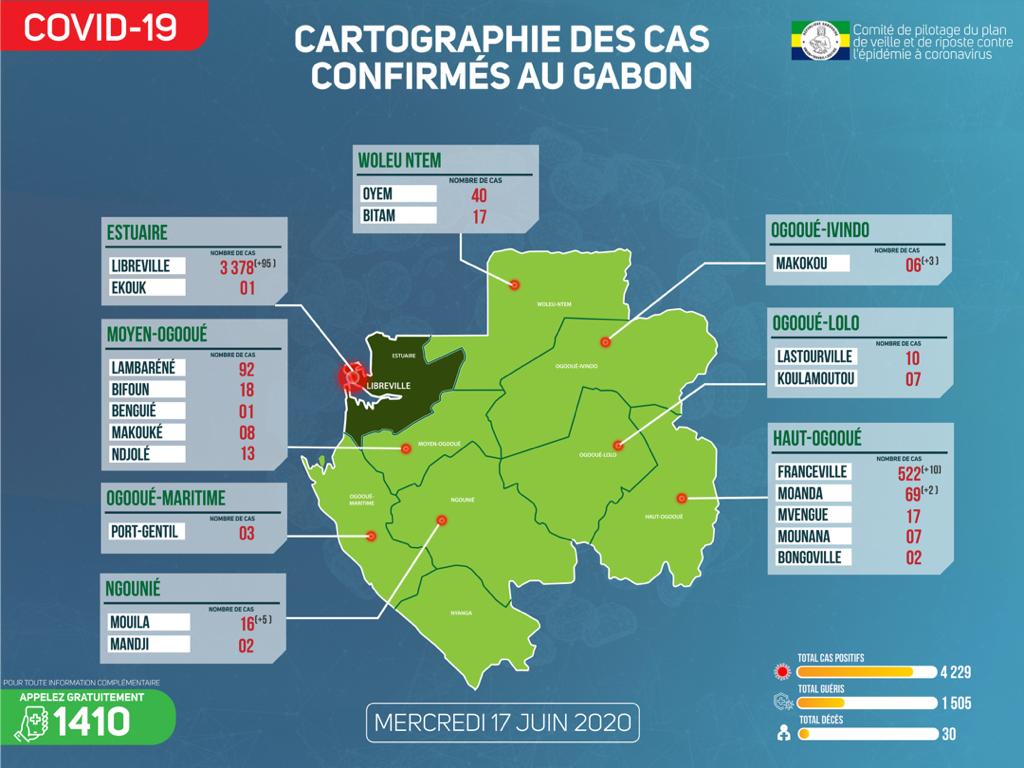 Gabon Matin vous livre le point journalier du Comité de pilotage du plan de veille et de riposte contre l’épidémie à Coronavirus au Gabon du 17 juin 2020.