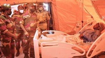 Ali Bongo a visité ce mercredi l’hôpital médico-chirurgical de campagne installé à la 3ème ...