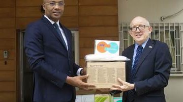 La mairesse de Libreville Christine M’ba N’dutume Mihindou et Samuel Watson chargé d’affaires ...