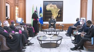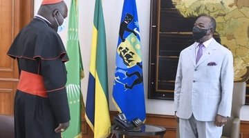 Ali Bongo a reçu ce mercredi au Palais Rénovation l’archevêque de Bangui, Son Eminence ...