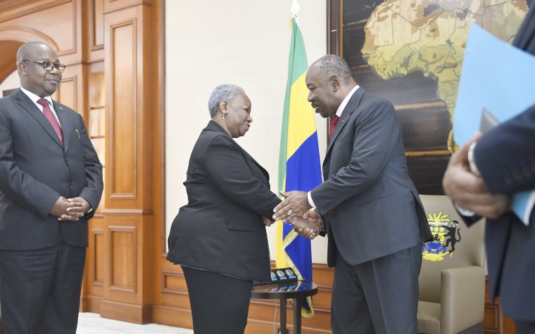 Ali Bongo s’est entretenu ce mercredi avec une délégation du Conseil de Paix et de Sécurité de l’Union Africaine, conduite par S.E.M. Ezechiel Nibigira, ministre des Relations Extérieures et de la Coopération Internationale de la République du Burundi, président du Conseil de Paix et de Sécurité de l’Union Africaine pour le mois de Janvier 2020. Prenait également part à cette entrevue, Bintou Kéita, sous-secrétaire générale des Nations Unies pour l’Afrique.