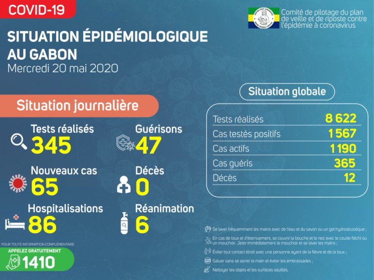 Gabon Matin vous livre le point journalier du Comité de pilotage du plan de veille et de riposte contre l’épidémie à Coronavirus au Gabon du 20 mai 2020.