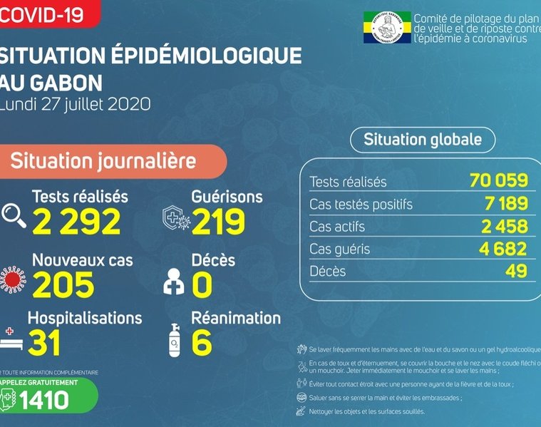 Coronavirus au Gabon : point journalier du 27 juillet 2020