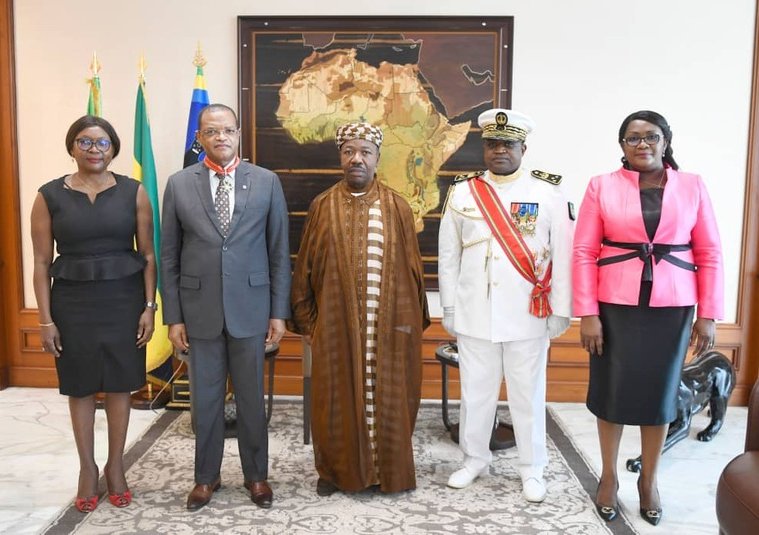 Ali Bongo a reçu ce vendredi en audience Fortunato-Ofa Mbo Nchama et Marie Delphine Lemanga Emande Mbiake, respectivement président de la Banque de développement des Etats de l’Afrique centrale (BDEAC) et représentant résident de ladite institution introduits par Nicole Janine Lydie Roboty Mbou, ministre de l’Economie et de la Relance.