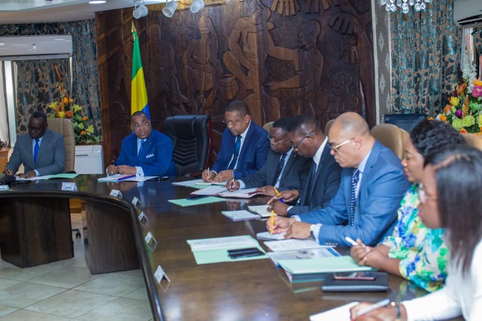 Les ministres de l’Economie et des Finances, Jean-Marie Ogandaga, des Solidarités nationales, Prisca Nlend Koho et le ministre délégué auprès du ministre de l’Economie, Sosthène Ossoungou Ndibangoye prenaient également part à cette séance de travail.