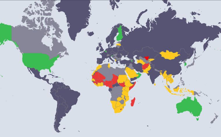 Il utilise un outil de l’OMS qui évalue dans quelle mesure les pays sont prêts à détecter des épidémies potentielles et à prévenir leur propagation, qu’il s’agisse du virus Ebola, du Zika, de la grippe, de la grippe aviaire, du choléra, de la fièvre jaune ou de la rougeole.