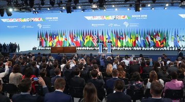 S’exprimant à la tribune du Sommet Russie - Afrique au nom du président Ali Bongo Ondimba, le ...