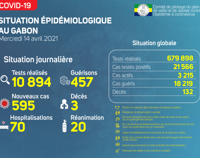 Gabon Matin vous livre le point journalier du Comité de pilotage du plan de veille et de riposte contre l’épidémie à Coronavirus au Gabon du 14 avril 2021.