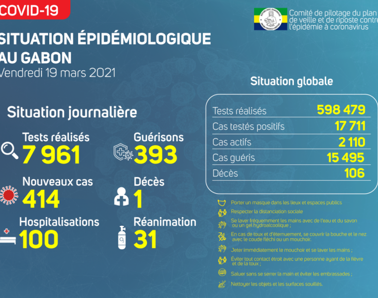 Coronavirus au Gabon : point journalier du 19 mars 2021