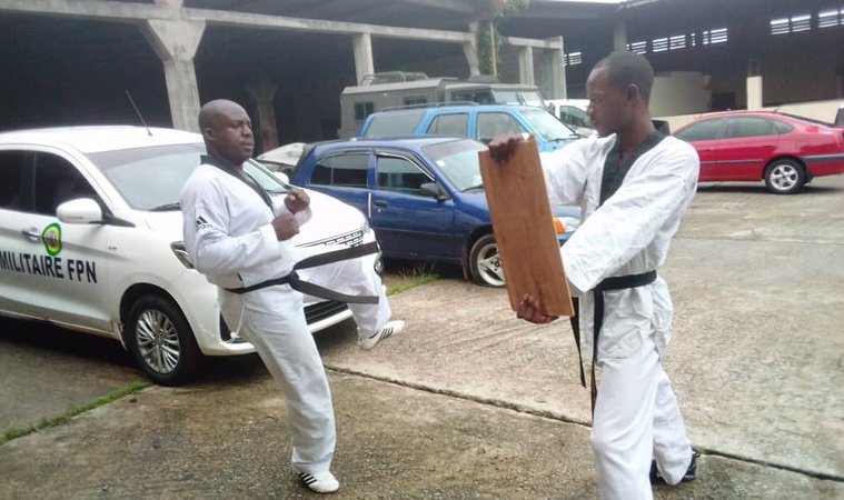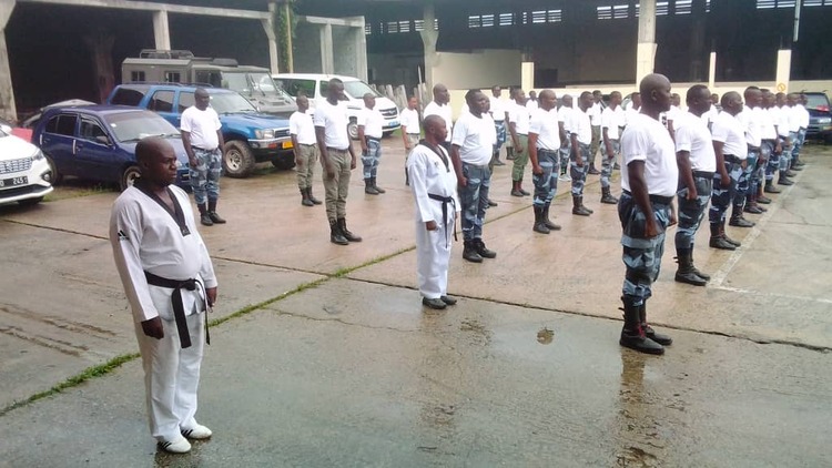 Une formation en taekwondo police option self-defense sous la supervision du commandant, maître Stheve wili Bawenda Mouloungui, 4eme DAN et des maîtres Julien Yenou et Arnaud Lengandhy Nguiandougou, tous deux 3e DAN, qui rentre dans les objectifs visés par l’APTAG au sein des forces de police nationale.